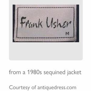 The Usher label was founded in 1946 in London,. The label's aim was to bring fresh off the runway looks, emulating the big name designers of the time and often incorporating high end details such as elaborate embroidery & beading .to shoppers at a more affordable price range. The quality & cut of vintage Frank Usher pieces makes them very desirable.