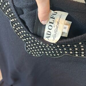 Rare NWT dead stock vintage Adolfo at Saks Fifth Avenue sweater dress with rhinestones on the collar and sleeves. Size 18. Made in USA.