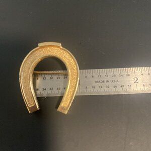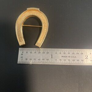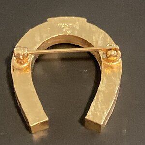 Rare Vintage Napier Signed Horseshoe Brooch Pin Gold Tone Equestrian Horse Retro