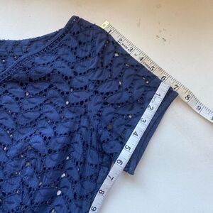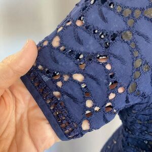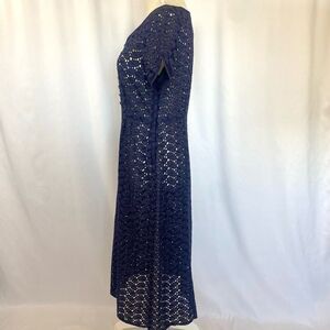 Rare Vintage Navy Blue Eyelet Lace Midi Dress Short Sleeve 50s Fit & Flare Women