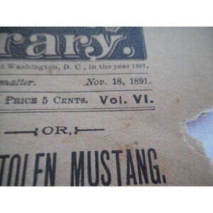 Rare Vintage Nov 18, 1891 Little Chief Library Dime Novel Southwest Saul's tip; The Stolen Mustang