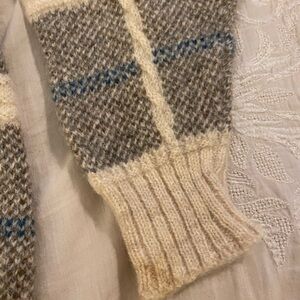 This sweater is hand made in the USA from virgin wool. So extremely warm. Retro stylish. Excellent condition. No holes