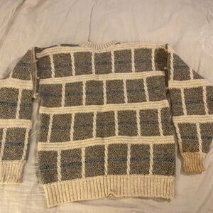 Rare Vintage PENDLETON Checkered Striped 100% Wool Pullover Sweater 90s