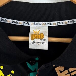 Extremely Rare PNB Nation hip hop graffiti Streetware style men’s baggy polo shirt with colorful crown logo all over print. This shirt is believed to be from the 90s but exact date can’t be place. It is in a men’s 2XL and has a lot of length to it making it perfect for taller men. It has a bright neon all over print of the iconic crown logo from pnb. There is one crown with a bit of discoloring but the shirt is in amazing shape for its age and is truly a statement piece. Please see pictures for a look of condition and size. Sure to make a great addition to anyone’s wardrobe