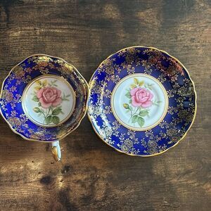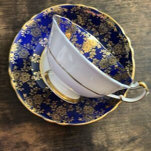 Rare  Vintage Paragon Cup and Saucer Cobalt Blue with Gold Trim