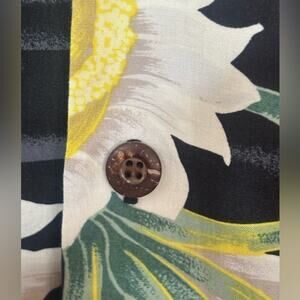 • Print: Bold tropical dragonfruit / night-blooming cactus flowers in white, yellow & green on a dark black/charcoal background