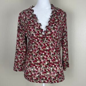 Rare Vintage Pink Print Top ASO Phoebe Buffay Friends V-Neck Faux Wrap Y2K