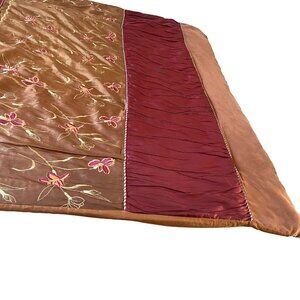 Rare Vintage Queen Wine Burgundy Gold Braid Lily Brown Silk Microsuede Coverlet