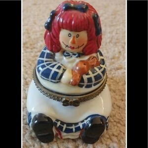 Rare Vintage Raggedy Ann Porcelain Trinket Box