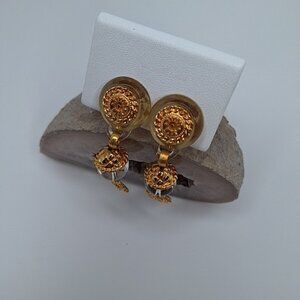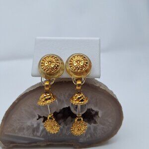 Rare Vintage Robert Rose Designer Gold-tone Clip-on Dangle/Drop Earrings EVC
