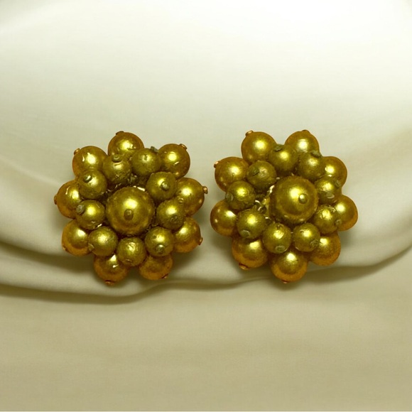 Rare Vintage Signed Kenneth Jay Lane Matte Gold Cluster Clip On Earrings
