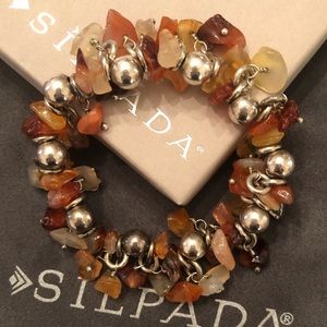 Rare Vintage Silpada Cha-Cha Sterling Silver Carnelian Stretch Bracelet B0989