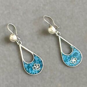 These elegant sterling silver drop earrings feature a classic teardrop design with genuine turquoise inlay and a delicate silver accent. Lightweight yet striking, they showcase the artistry of Mexico’s Taxco master silversmiths.