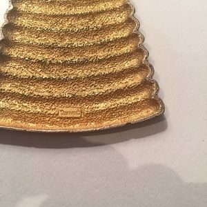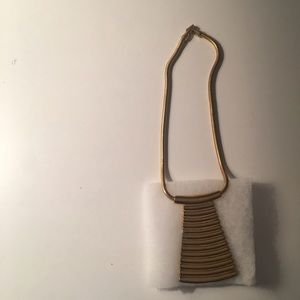 Rare Vintage Trifari Pendant Necklace with Trifari © symbol. The necklace is 16 inches from end to end and the pendant is 3 inches long. This necklace captures the essence of Trifari – bold, gold, and powerful. It is sturdy and in great condition. The snake chain is high-quality and curves seamlessly around the neck with no awkward bends.