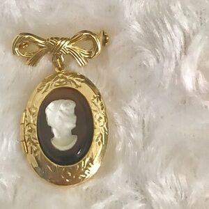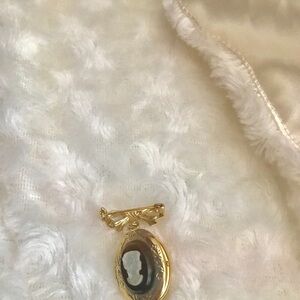 Gorgeous Vintage Gold tone Victorian Cameo Brooch pin that opens up and you can put a picture in.