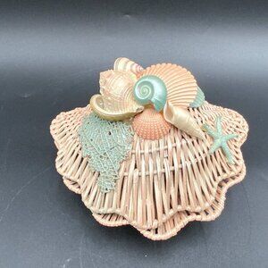 Rare Vintage Wicker Clam Shell with Seashells Storage 1990's