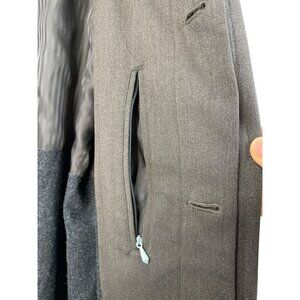 This Bill Blass trench coat offers a sophisticated look with its charcoal gray hue and classic design. Ideal for professional or casual settings, it combines style and comfort with a wool blend material and a belted waist for a tailored fit. 8083