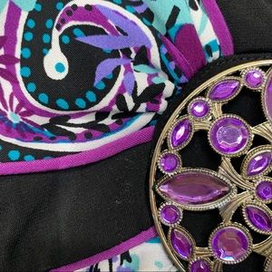 Rare Vintage Y2K Blue & Purple Paisley Floral V-Neck Dress Metal Jewel Waist