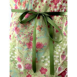Rare Vintage Y2k Graffiti New York Chic Chiffon Green Floral Midi Dress size XS