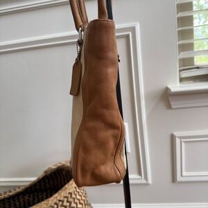 Rare Vintage Coach 9429 Bonnie Bucket Linen Leather Tan Cream Satchel Small Tote
