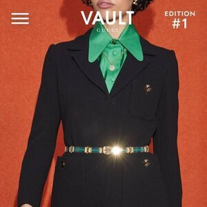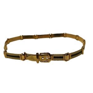 Vintage Gucci enamel belt Cream and brown and gold 29" long plus 2 1/2 of belt with 3 holes for adjusting the size the belt is 1" wide The back shows signs of rubs/ wear in 2 particular areas Overall very good condition 7-10 #gucci #vintagegucci #enamelgucci