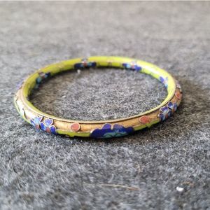 Vintage Chinese Raised Cloisonne Floral Design Bangle Bracelet