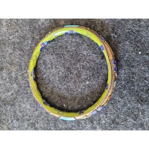This bracelet is 2.5" in diameter. It is champleve on the outside and cloisonne on the inside.
