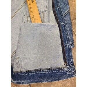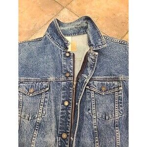 This very vintage rare Gap denim jacket in men's XL size is a rare find for those who appreciate a retro style with a hint of grunge and biker flair. Made of cotton denim, this short length jacket features a spread collar, full ZIPPER & BUTTONS closure, and various pockets for functionality. Suitable for all seasons, this jacket is a versatile piece that can be styled for casual occasions with a touch of 80s and 90s nostalgia. The classic blue color and solid pattern make this outerwear a timeless addition to any wardrobe. The Jean Jacket never goes out of style.