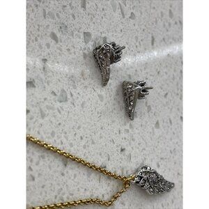 Rare Vtg Juicy Couture Angel Wings Rhinestone Necklace Set Earrings Silver Gold