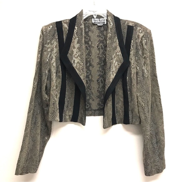 Rare Vtg Sheri Martin Sz 14 Jacket Blazer Cropped Snake Skin Black Trim Accent