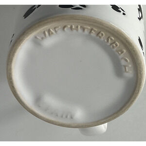 This rare Waechtersbach white embossed deer hooves coffee cocoa tea mug from Germany is a medium-sized ceramic and porcelain mug with an abstract pattern featuring a caribou design. The round mug is suitable for both hot and cold beverages and is decorated with wild animal-themed accents, making it a unique and collectible piece for all occasions. The vintage mug from the 1980s has a capacity of 12 ounces and is suitable for personal use by unisex adults who appreciate contemporary style and seasonal decor. There are a few imperfections, see photos!!!