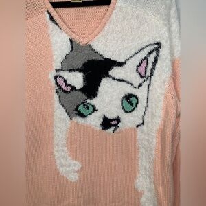 Rare Wildfox White Label Peach Oversized Joan the Cat Sweater Size XS