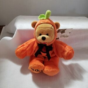 Rare Winnie the Pooh Halloween Pumpkin Plush. He has "Boo" on the bottom of his one leg.