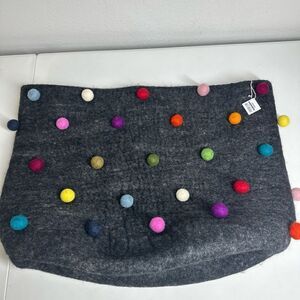 Rare Wool Felt Big Basket Gray Made In Nepal New Zélande Wool