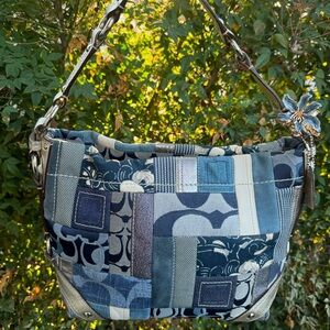Y2K Coach denim patchwork shoulder bag leather trim silver hardware. In AMAZING condition no noticeable flaws. Such a rare and unique bag 💙🩶🩵🤍