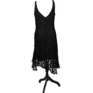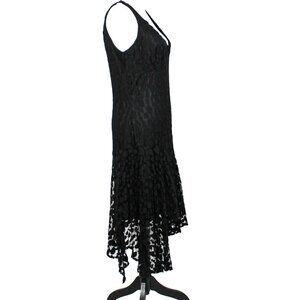 Rare Y2K Gothic Flapper Lace Dress Black Asymmetrical Hem WHBM Size L Romantic