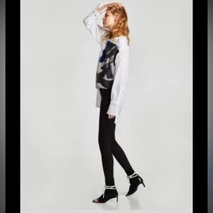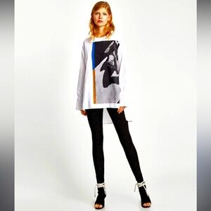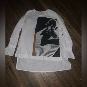 Worn once like new rare hard to find I’m not sure if this was a collab with a photographer because I’ve never seen this kind of Zara tag it’s states Zara W/B. I couldn’t find another being sold online in the US. Sold out on website. Unique back kinda if like cotton tunic either cuffed long sleeves with button detail.