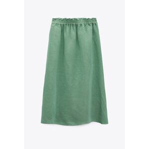 SKIRT MADE OF LINEN BLEND FABRIC. HIGH-WAISTED WITH ELASTIC WAISTBAND. A-LINE SILHOUETTE. CONTRASTING FRONT BUTTONS.