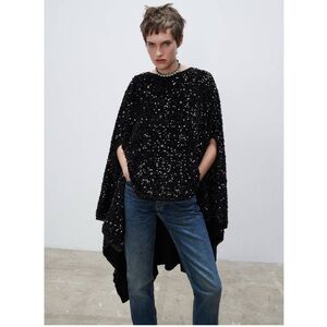 Rare and hard to find ZARA LIMITED EDITION SEQUIN CAPE / WOOL KNIT PONCHO BLACK