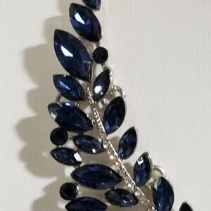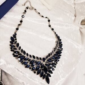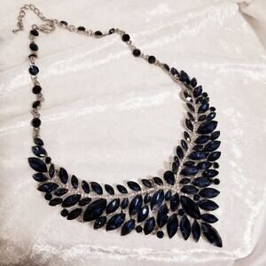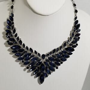 Rare blue marquise bib statement 14" 2" ex. 1.1936 silver tone and blue rhinestones