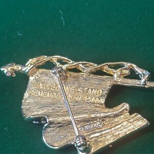 RARE FIND! Rhinestone and enamel United we stand brooch. Monet, the dimensions are 2 inches long and 2 inches wide. 911 brooch it’s written on the back United States and memory of 911. Monet.