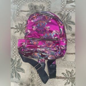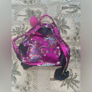Pink backpack oriental print backpack hot pink backpack magenta floral pink bag charm fall bag falll backpack vintage bag vintage backpack Betsy Johnson backpack purple backpack