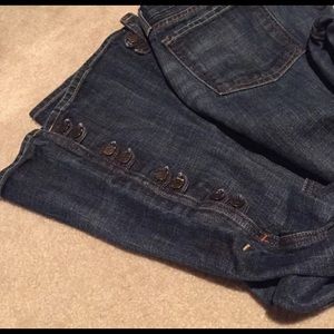 Boot cut and button detail on bottom sides (see pics). In like-new condition and smoke free. Inseam is 31.5".