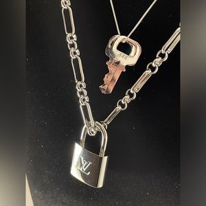 Palladium is more valuable than Sterling silver on the market currently. This set comes with a 15 inch sterling Silver necklace that has both keys hanging from it and a new 18 inch paperclip large link necklace that holds the Palladium padlock. Palladium is a beautiful, rare metal that keeps it shine and does not tarnish. The paperclip necklace comes with a lifetime guarantee, it is a quality metalfrom a brand called forever Sterling.