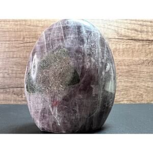 Anhydrite also known as Angelite. Purple anhydrite is more rare. This stone also has a chunk of green epidote as well. From Madagascar weighing 465 grams.