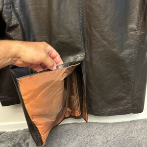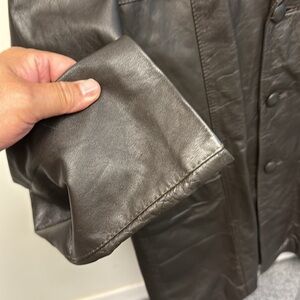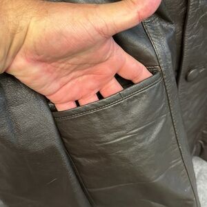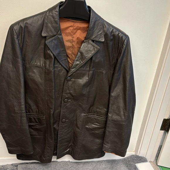 Rare vintage 70s brown calf skin jacket fully lined ,(has interior zipper trim for a fur liner how ever can’t locate. Sold as is for jacket )size men’s large 32 long /shoulder to sleeve 24 ,22 across arm pits. Relax fit , jackets been hiding in closet for many years needs to be worn to break down to soften fit , this Will be a classic, made in American, perfect travel jacket