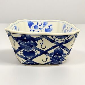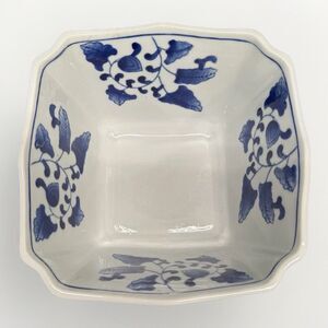 This rare vintage Chinese bamboo floral blue and white Porcelain square serving bowl is a unique and beautiful piece that would make a stunning addition to any collection. Made of high-quality porcelain and pottery, this bowl showcases intricate blue and white floral designs typical of Chinese antiques. With a square shape and measuring 8.5 inches in diameter, this vintage original piece from China is a timeless piece that embodies elegance and tradition. Perfect for serving or displaying, this bowl is a true treasure for collectors of Asian antiques. Please note-this is pre-owner but in overall great shape. No chips or cracks. Please make sure to look at pics closely!