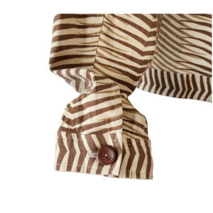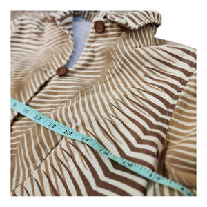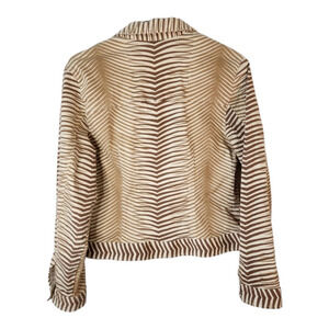Brown striped blazer with mixed media monkeys. Size medium. One the part of the back collar that touches your neck there is some wear.