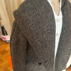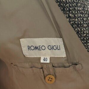 Rare vintage Romeo Gigli cropped wool coat with exaggerated shawl collar and structured silhouette. Fully lined with inner button closure and double-breasted front. So unique and timeless—perfect for layering over dresses or styling with tailored trousers.