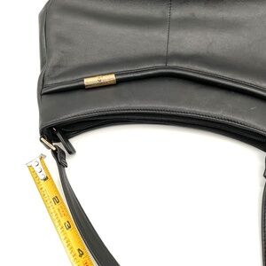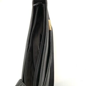 The Etienne Aigner vintage purse and wallet set in black with a soft zip closure and matching coin purse is a stylish and practical accessory for women. Made from leather with gold hardware accents, the set features a medium size with a lined interior and inner pockets for organization. The vintage design adds a touch of old-school charm to any outfit, making it a timeless addition to any wardrobe. Perfect for carrying essentials in style, this set is a must-have for any fashion-forward woman.